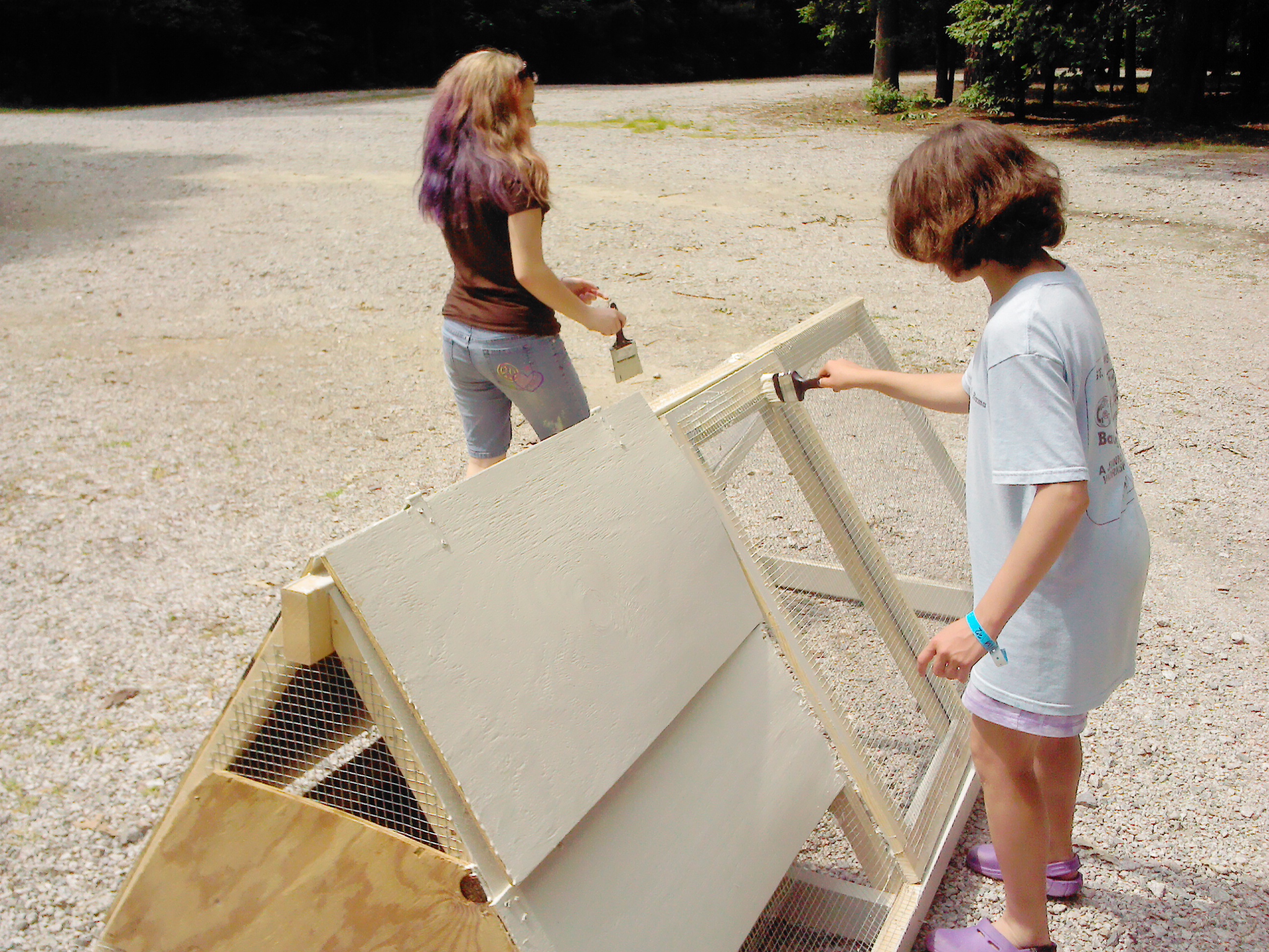 Today, I was going to do Rock Geology for the first Pick Your Own. However, I didn’t get a chance to finish priming the coop, so I had to keep working. Park wanted to play human checkers, but since with sidewalk chalk inside the program building. As I moved the cage, four of the five girls walked up and said: Can we help clean?