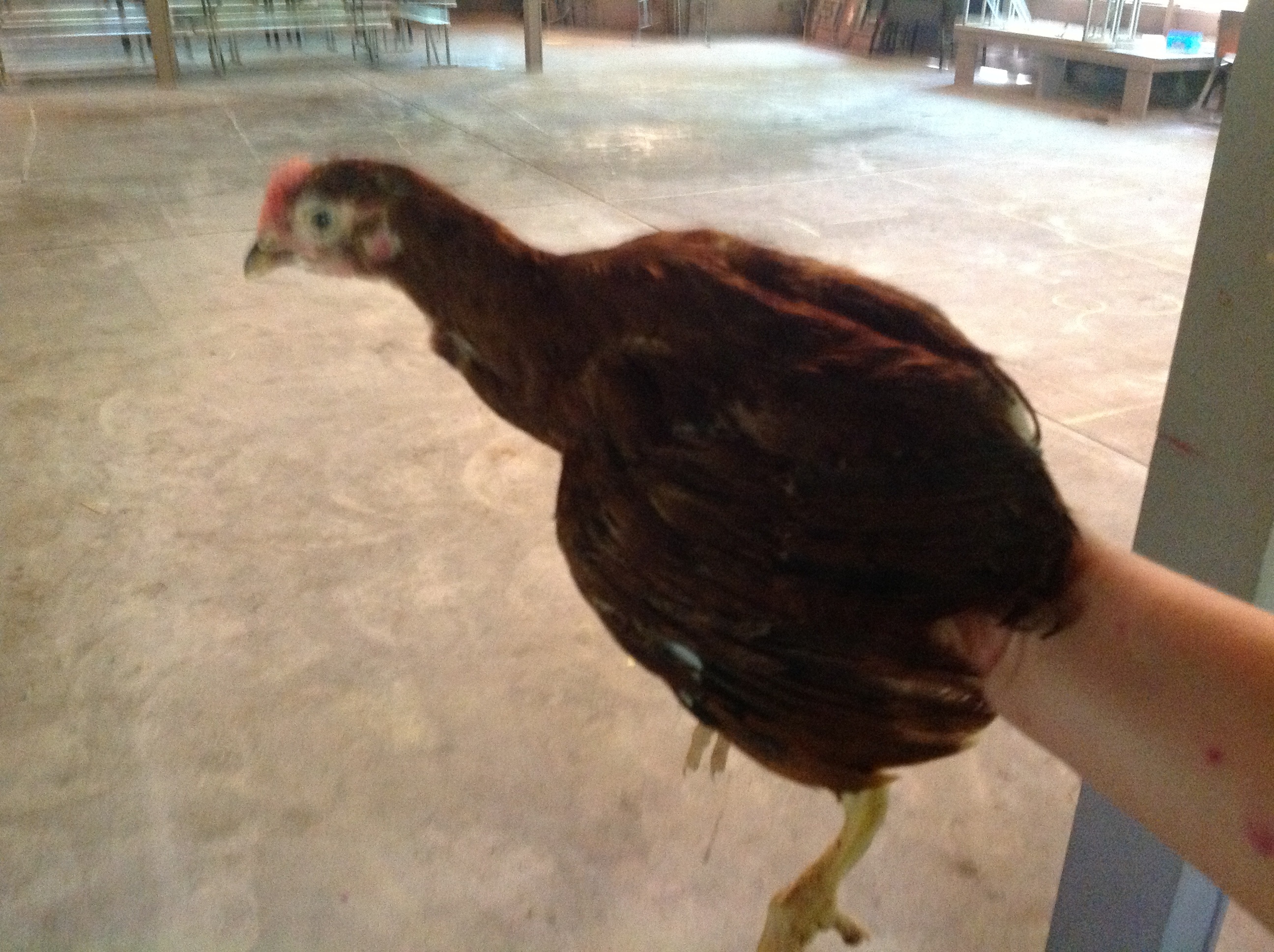 Over the weekend, tragedy struck. Somebody who wasn’t supposed to move their chicken tractor, tried to do so with the chickens outside. They dropped the tractor on one of the chickens, and managed to break the leg of two others (including the one shown above). I left the two chickens with broken legs, as they were eating, roosting, drinking, and pecking. I don’t know if chickens feel pain, but I am hoping that some of the leg functions return to these chicks. They aren’t being picked on or at, and don’t seem to act as though they are in pain. If things don’t improve by Wednesday; however, I will bring them home for the dog.