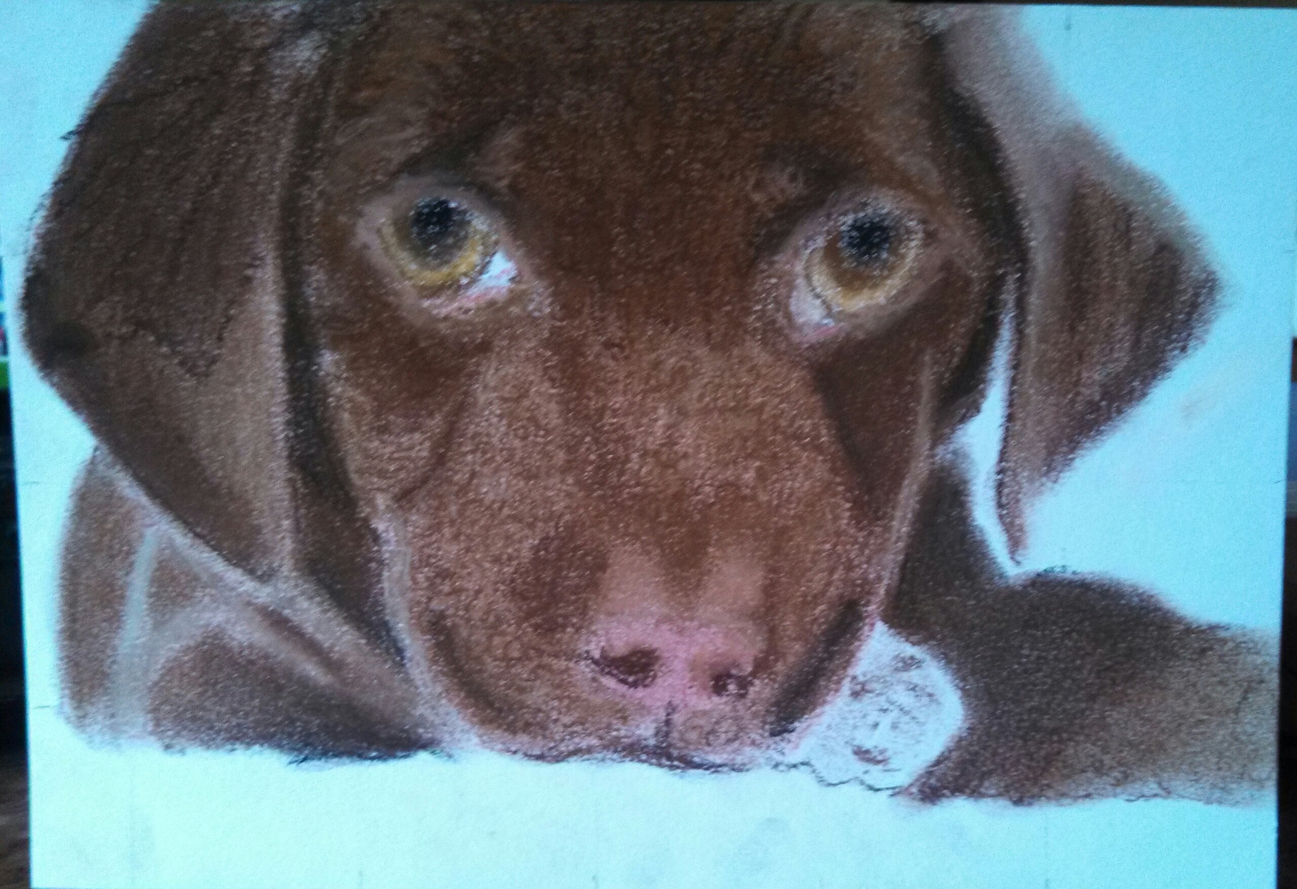 Finally, I switched to the hard pastels to get some more final details in. The nose color was slightly off, and the eyes need a twinkle.