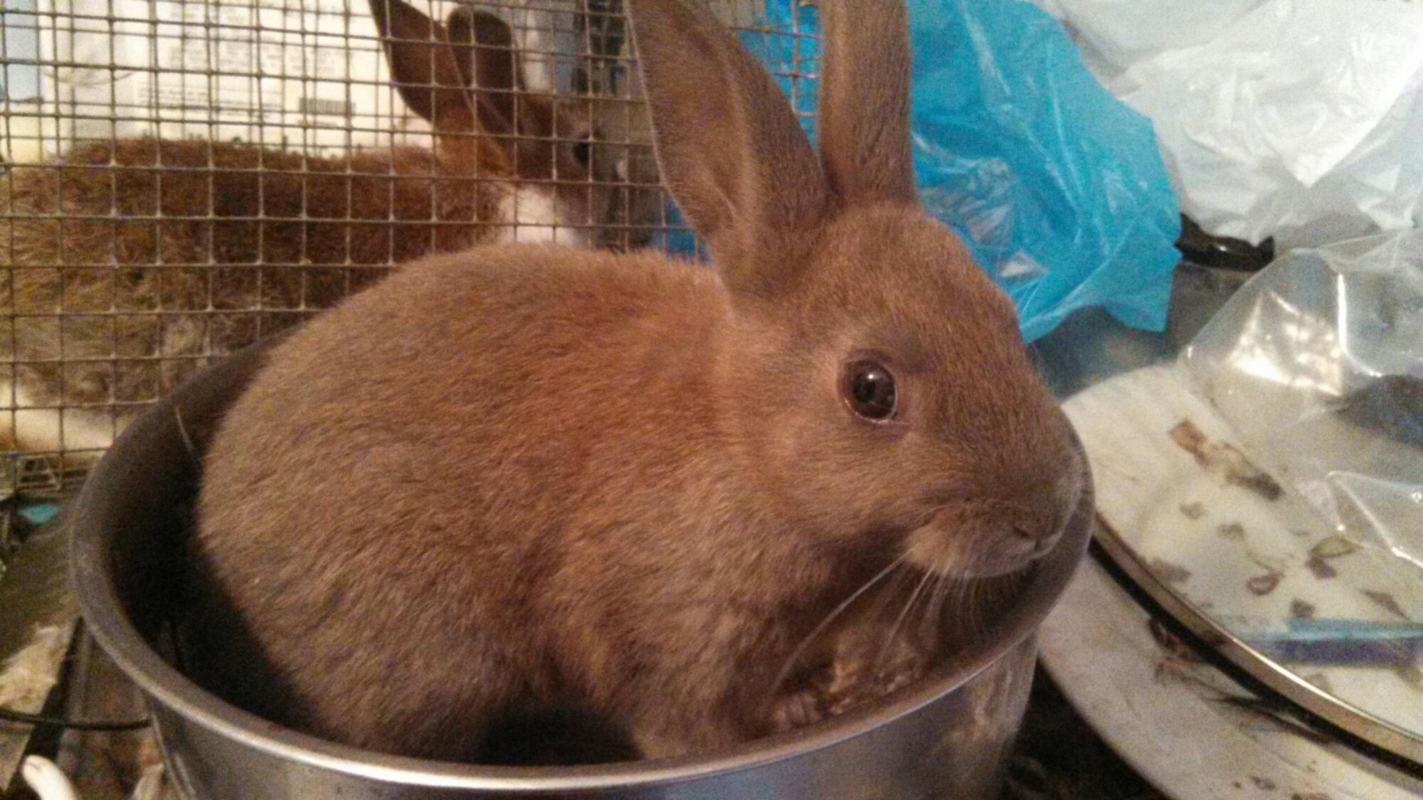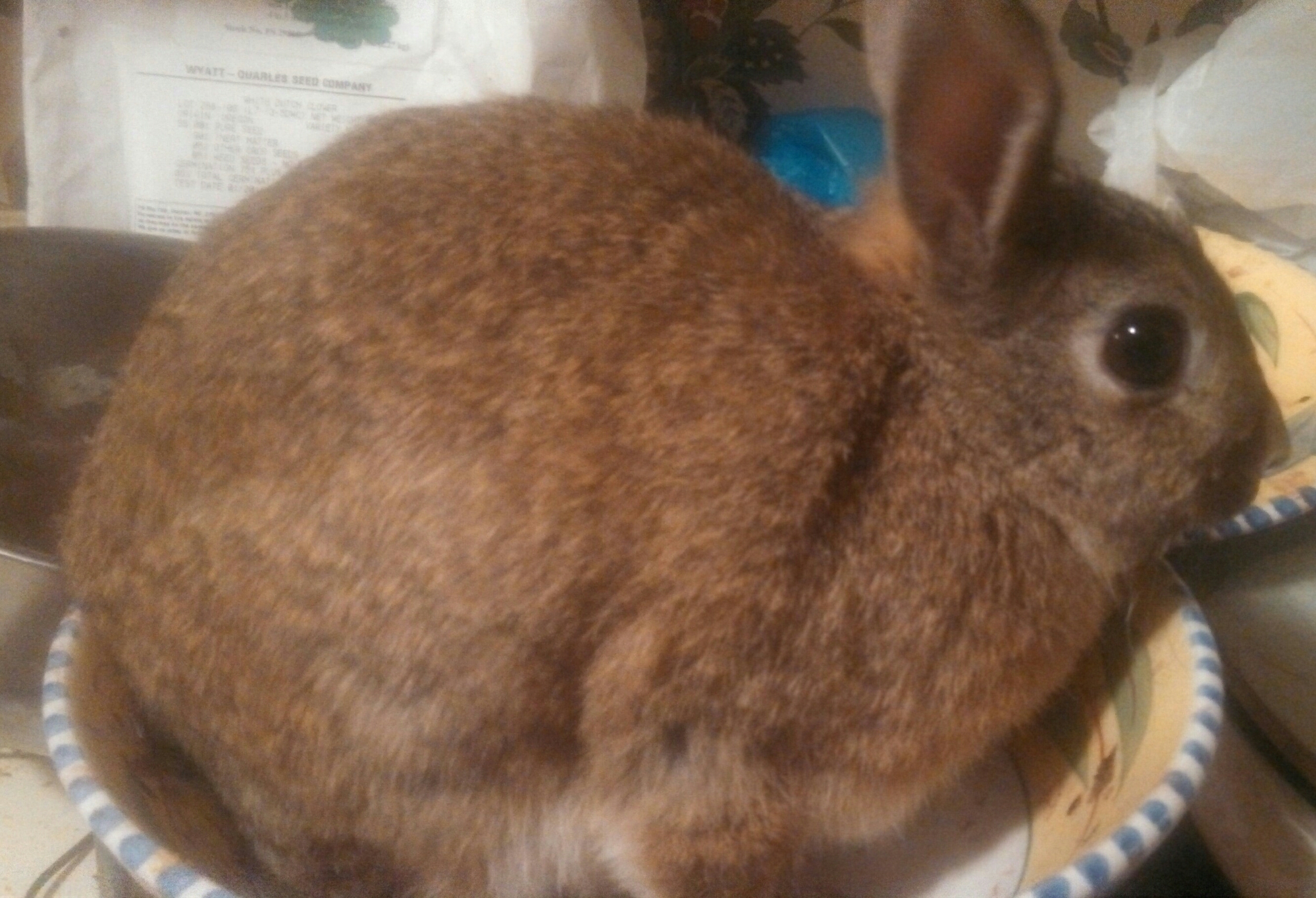 This is Alfisol, a small brown doe that is 4.5 lbs. She lives in her own doe cage.