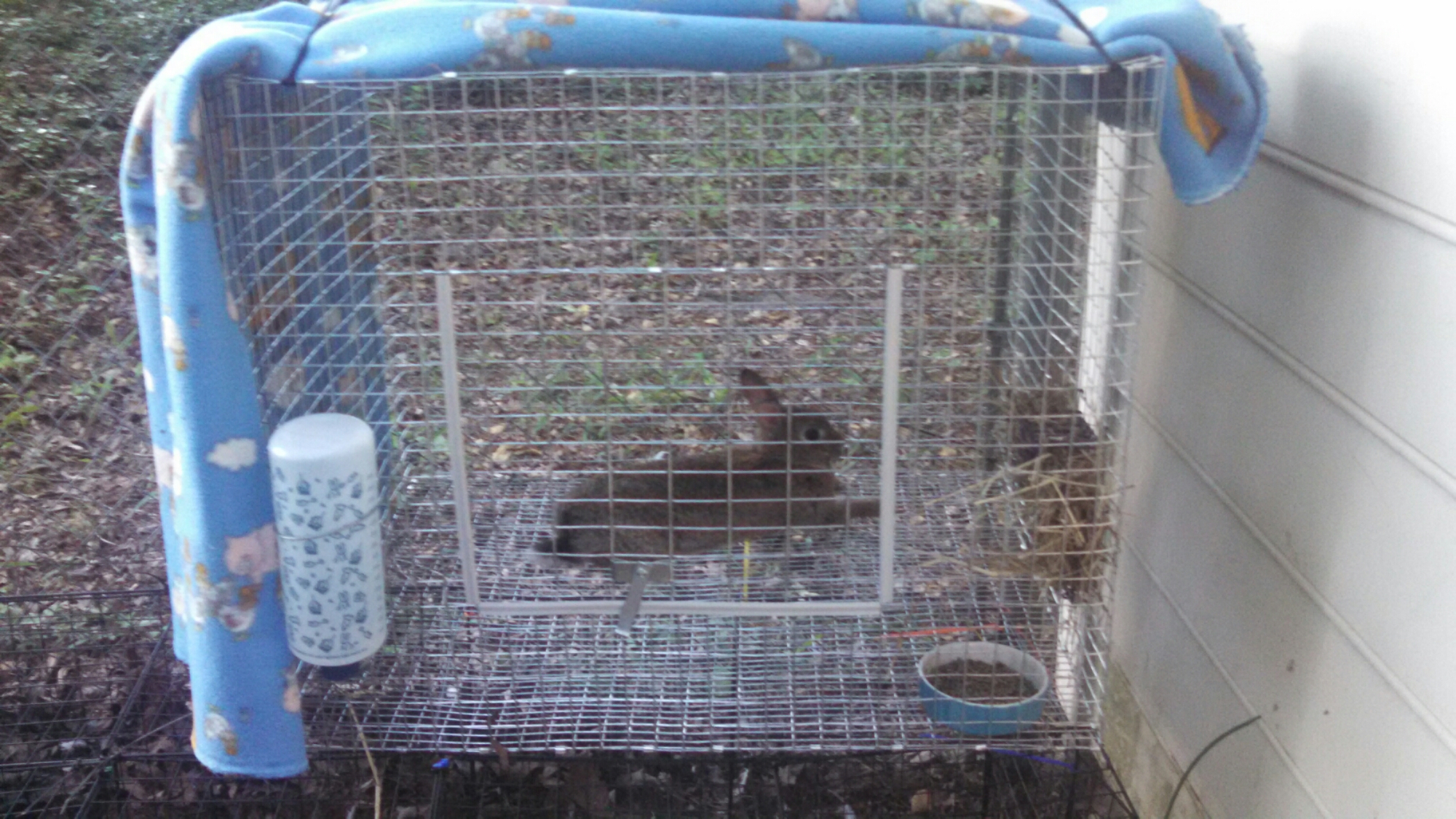 I spent a ton of time in the last week and a half setting up my rabbit operation… Including cage building ( I love wire and J clips), grow out pens setup, and shuffling everything around in the carport. But, I thought it was time to introduce my mini-rex trio.