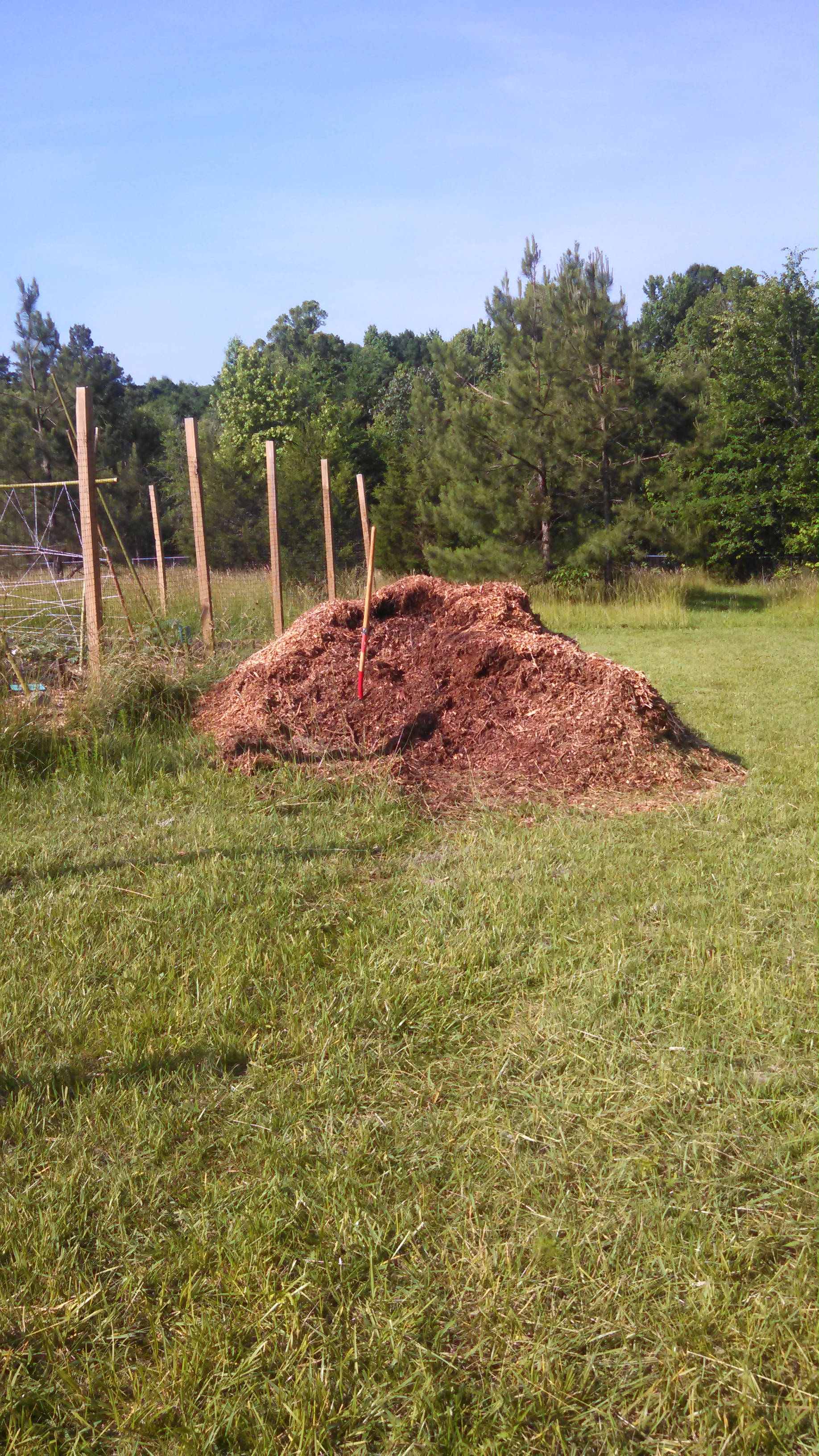 However, somebody plopped leaf mulch right in the middle of the area, and I am working on moving that by hand. It was five cubic yards of mulch.
