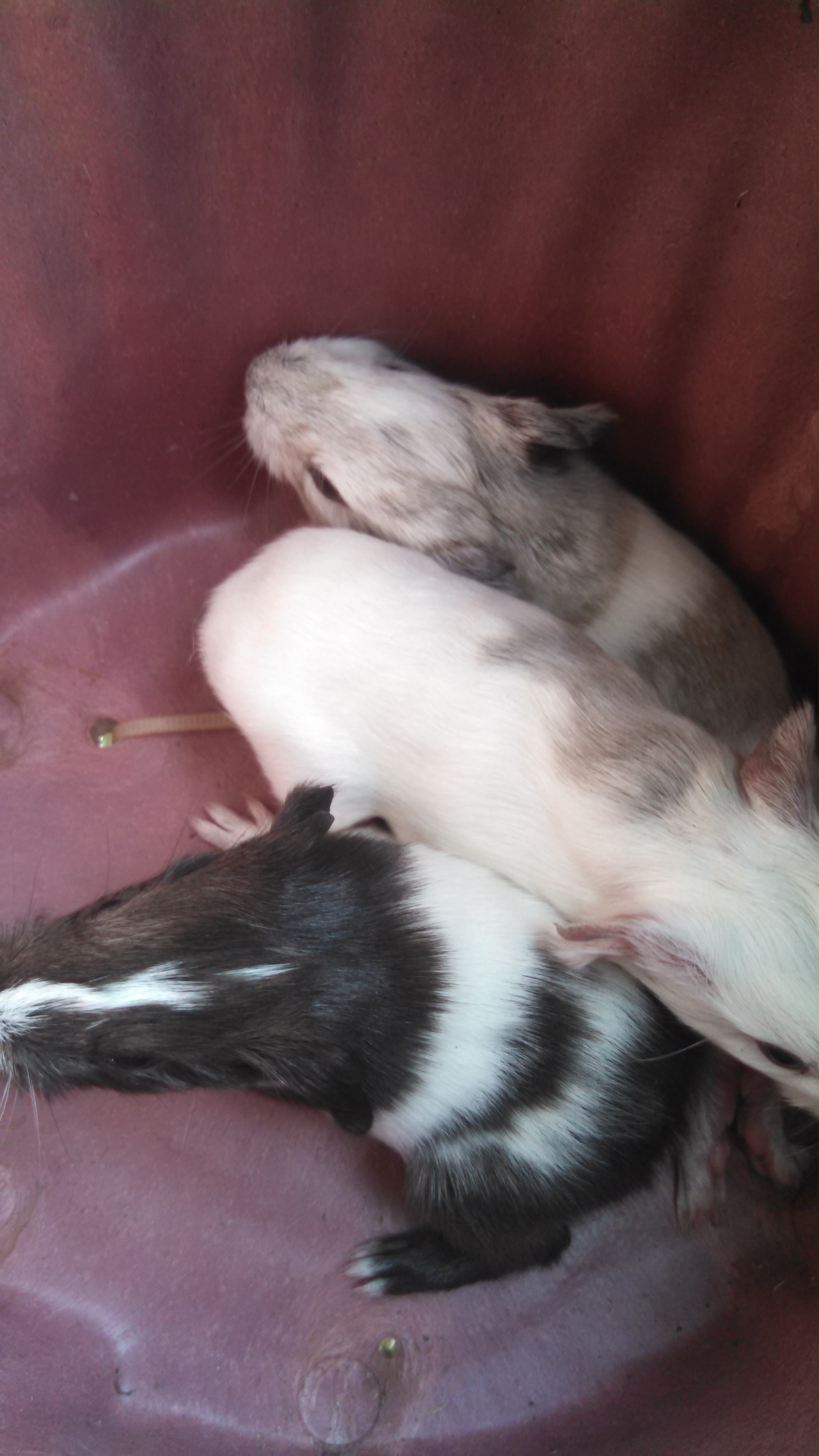 This lovely sow gave birth to three healthy little piglets. Lots of pretty splotches of colors. A mostly white pig, a white and grey pig, and an Oreo pig… (Totally calling this one Double Stuffed)