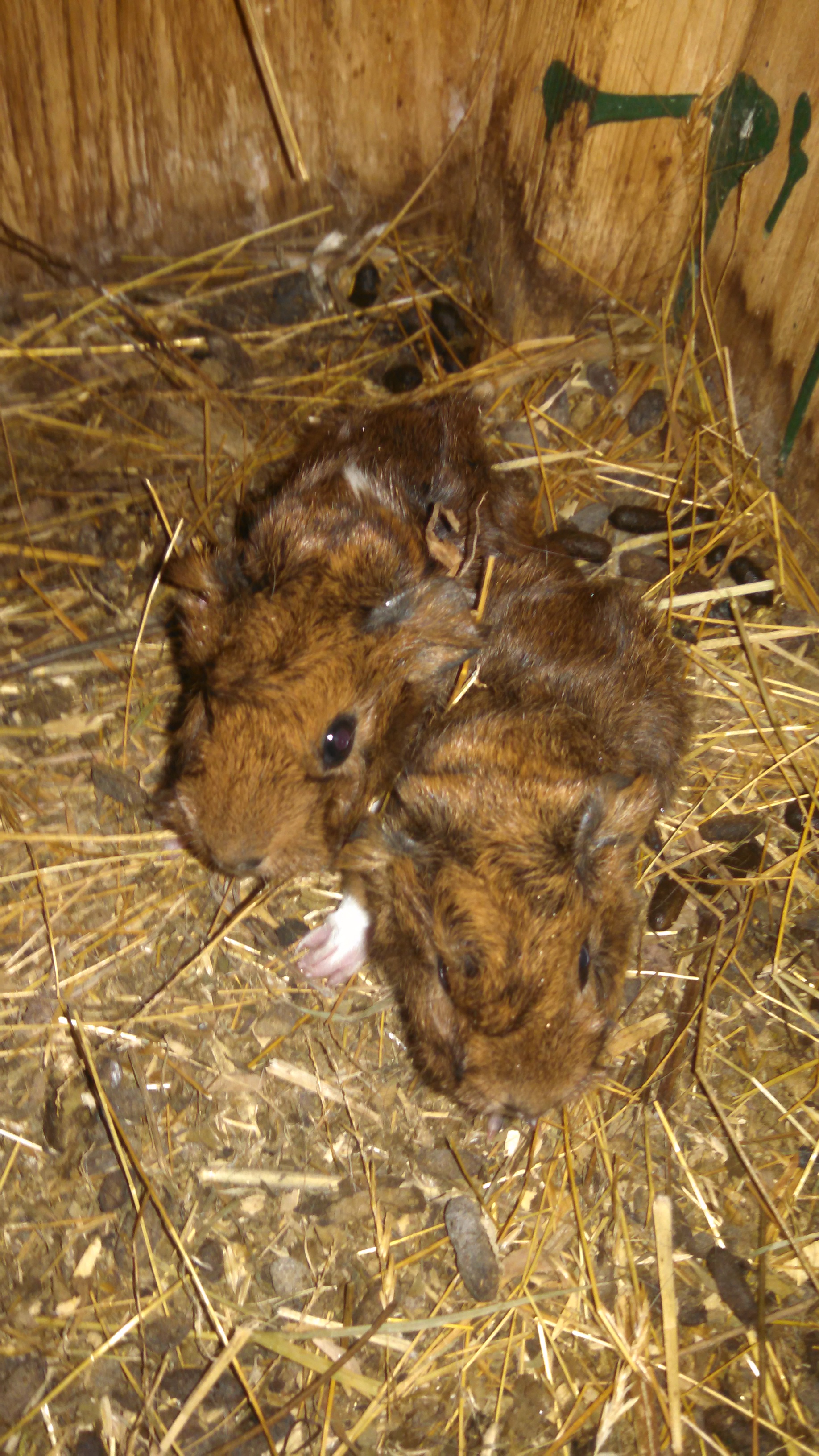 Creme Puff is a smaller pig than most… So generally, she only has two babies. But these guys are American and Abyssinian crosses, and they are a magnificent burgundy color that the camera just doesn’t do justice to! Her last two babies were solid grey, and solid black… So this color is an amazing thing. More should be coming soon.