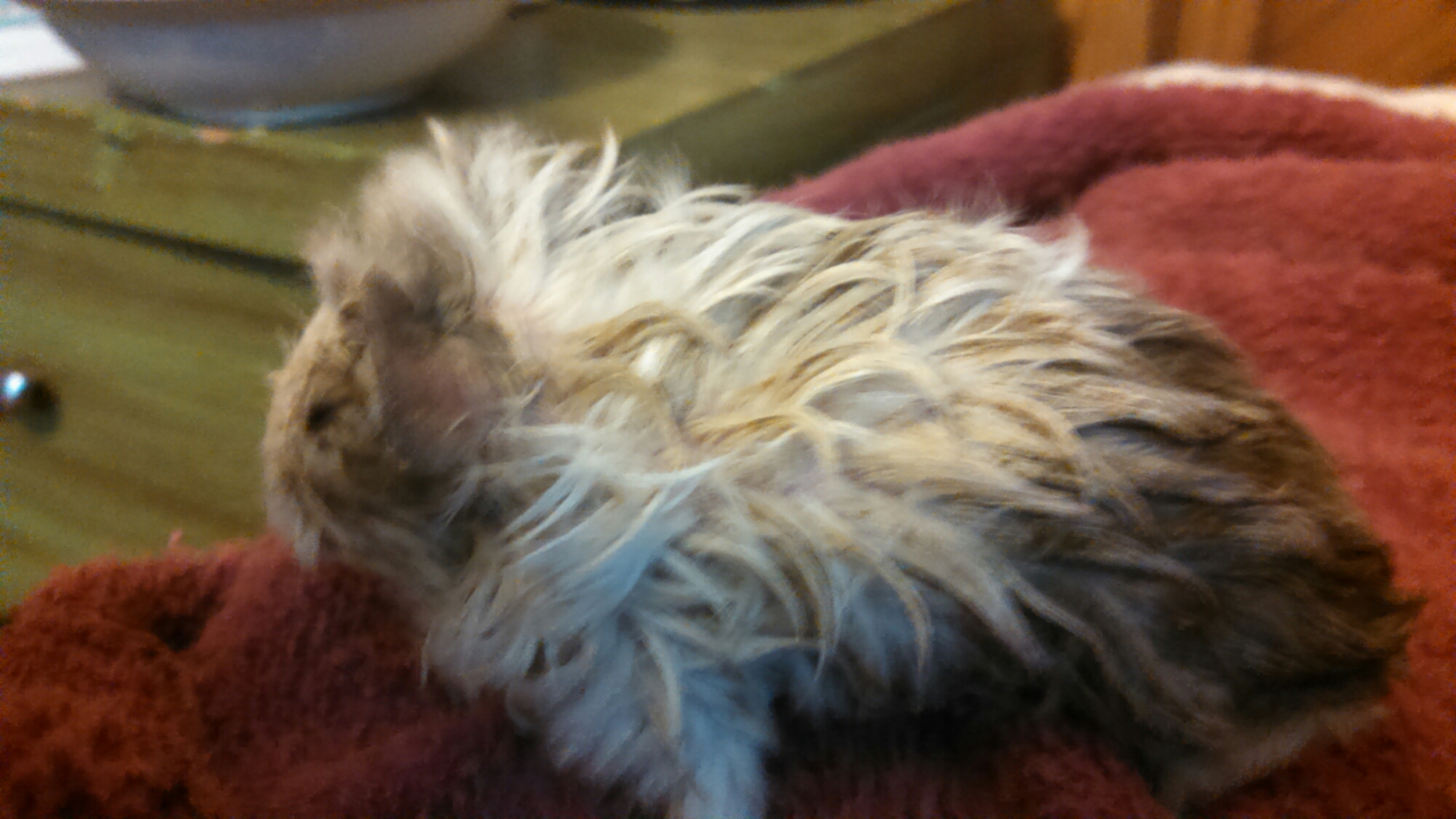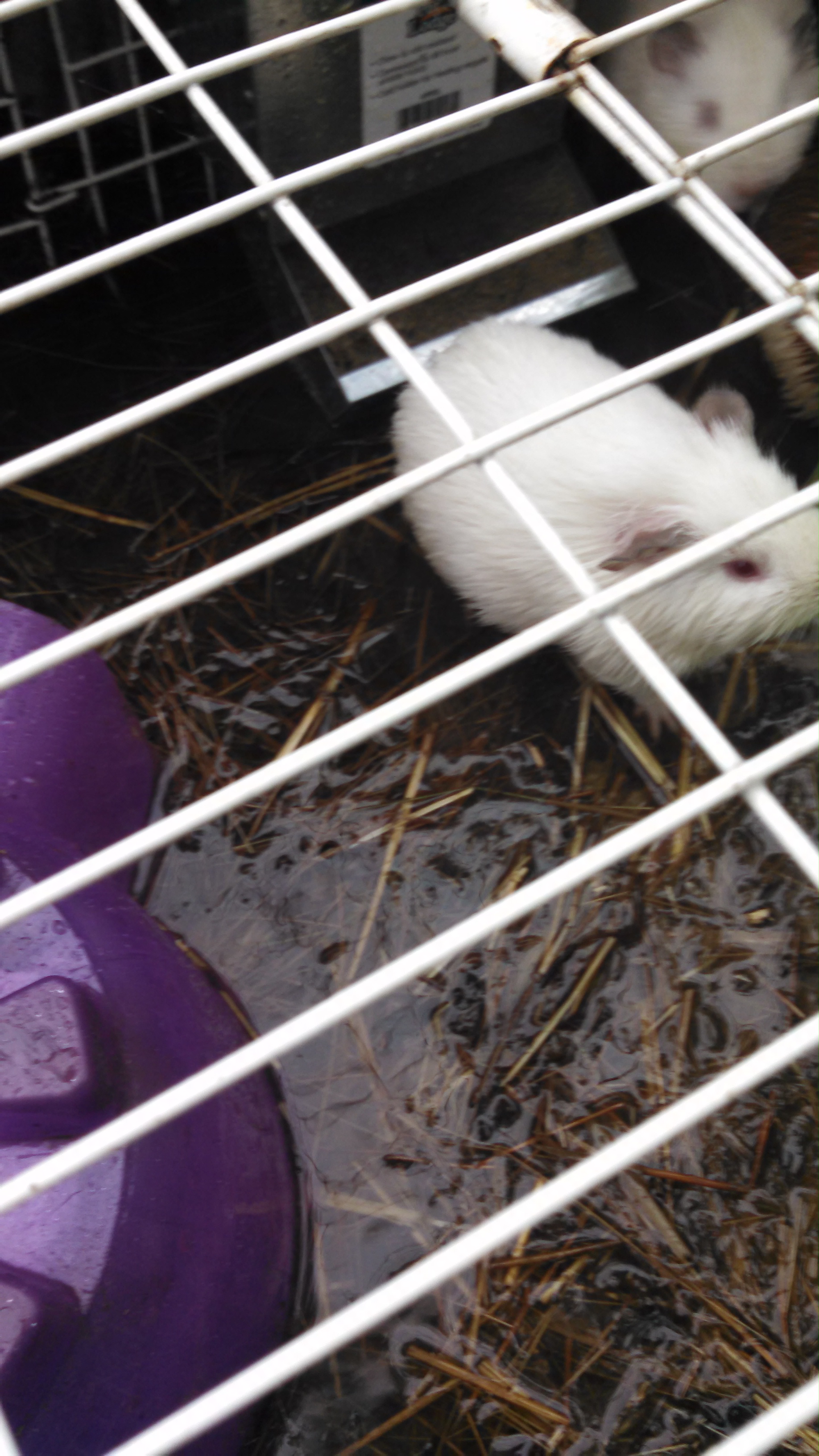 When I woke up, it had been raining for awhile. And after I looked outside, i saw the roof had blown off of the guinea pigs. They were standing in over an inch of water.