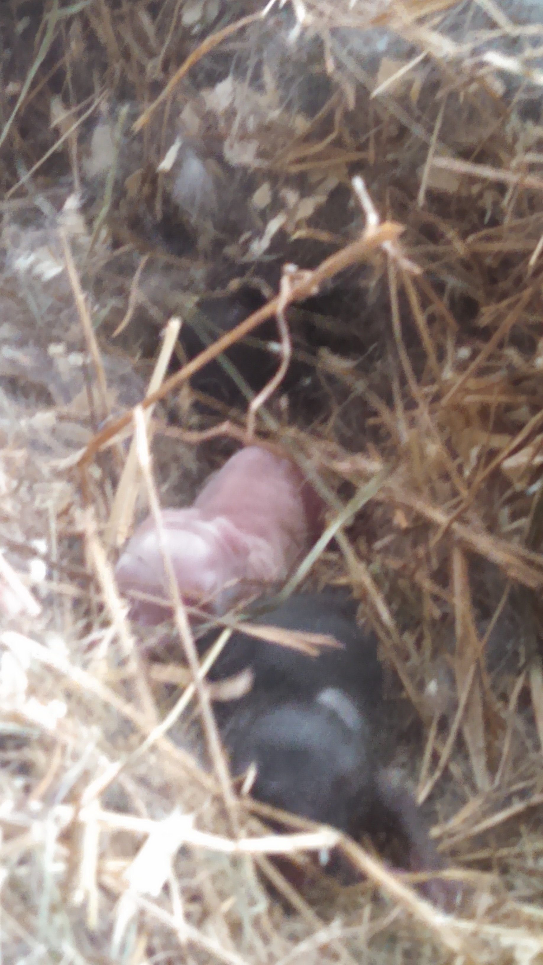Rabbits don’t have heat cycles, as they ovulate when they are put in with a buck to breed. Gestation lasts 30-32 days, and they have, on average 6-8 babies. These babies are born totally naked, helpless, with their eyes closed. Mothers die, babies need to be hand nursed. Because they are so underdeveloped, so many things can go wrong before they grow to respectable meat size (though, our cat doesn’t complain). It takes them 4-6 months to grow out, and in the larger sizes, replacement does can’t be bred until after six months, and bucks don’t mature until 7 months (which is why I haven’t had any babies after Spytfyre did). They take 4-6 months to butcher, at a weight of 3-5 lbs, with about a 50% dress out rate (meaning that 1.5-2.5 lbs are meat).