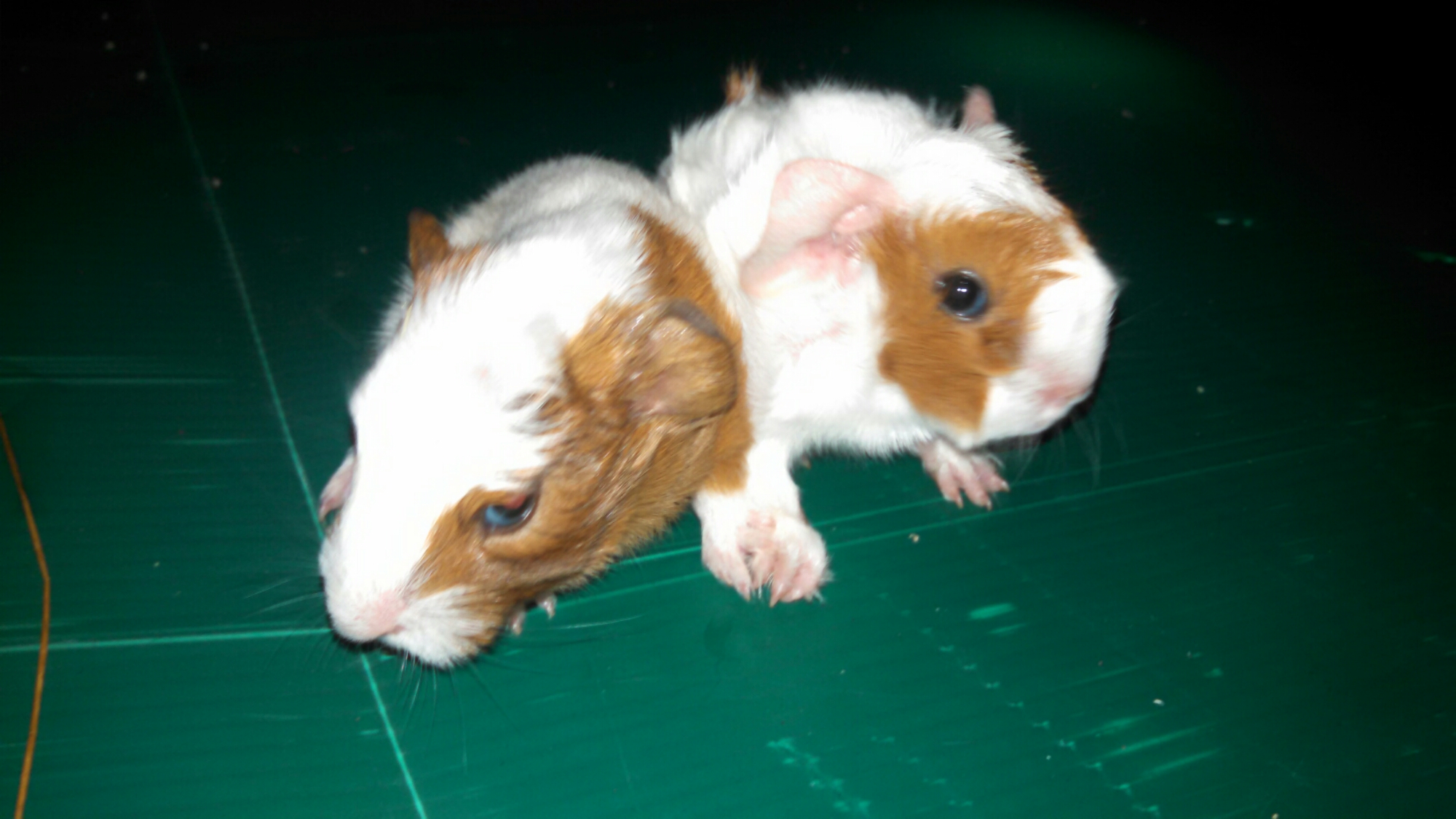 Guinea pigs go into heat once every 2-3 weeks (not like dogs, they don’t bleed), and gestate for over two months (68-72 days), which is crazy given their small sizes! They have between 3-5 babies each. These babies are born running around, with all of their hair, eyes open, and nursing. If the mother dies they can be weaned immediately, though they grow faster with mothers milk. Even though they gestate longer, they are about the size of a one month old rabbit, so, timewise, nothing is really lost.