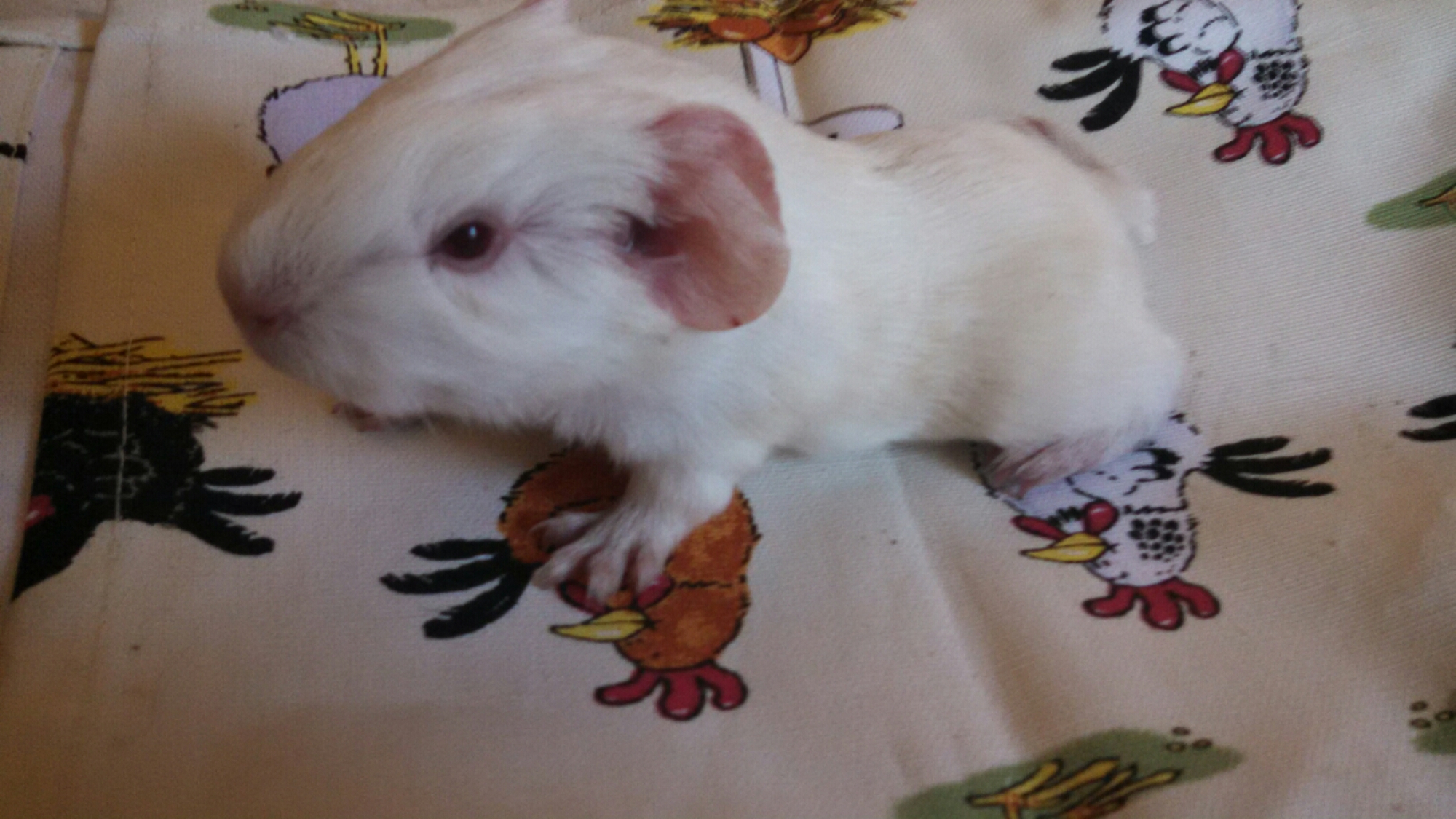 Also, I found another guinea pig baby this morning. I have a total of four albinos! Three from Abby, and one from Buffy.