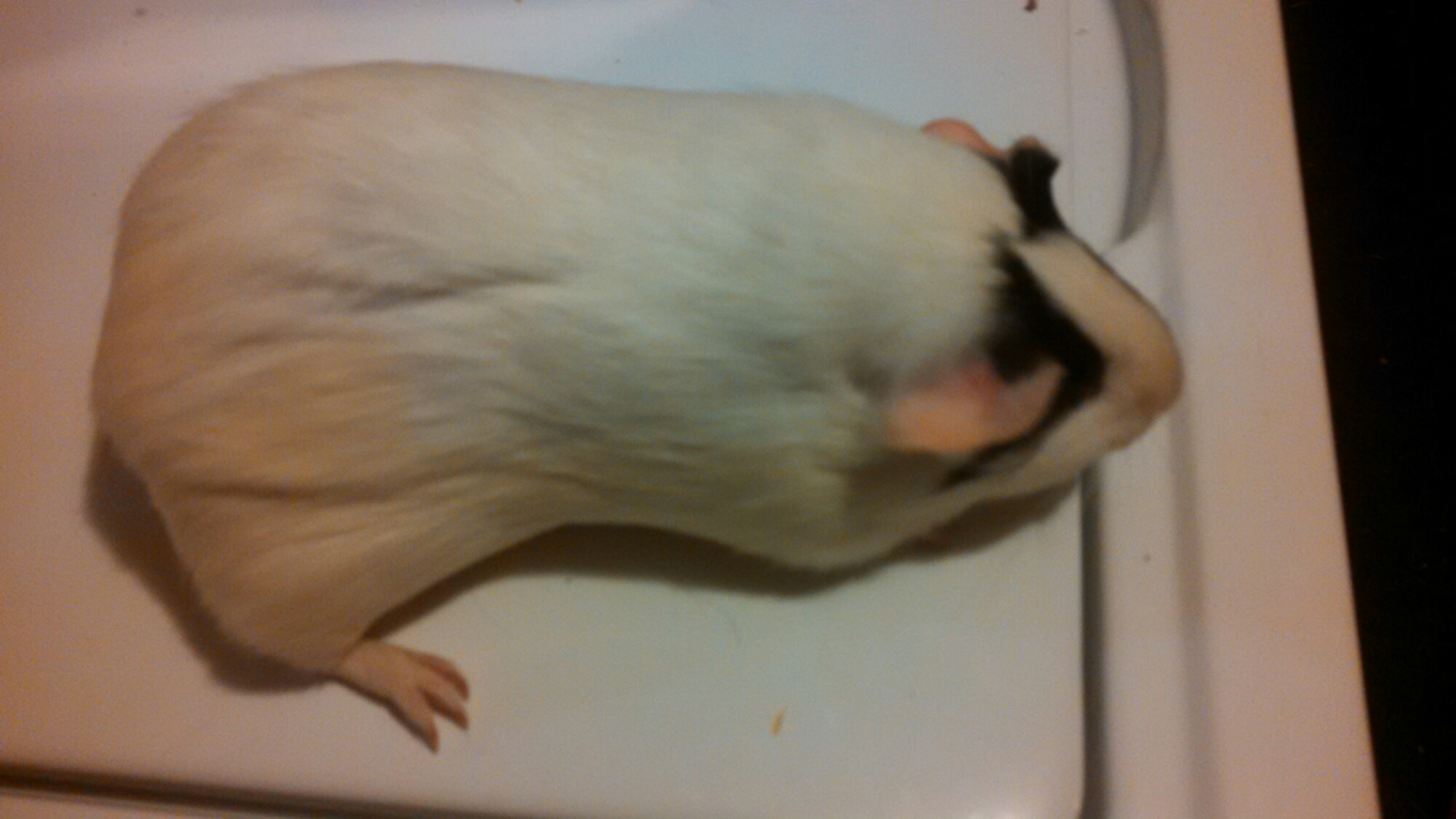Fauna is 2.35 lbs, and she is mostly white with a bit of black over her eyes.