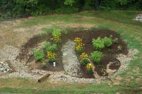 Over a 6 week process, I got to know 10 girls very well, and I am very proud of the work that they did for planning the garden. I thought the pictures would have the most impact if they were shared in a before and after sequence, as well as some photos on how the rain garden actually functioned during the summer of 2014. We are hopefully going to be adding grasses to keep the mulch from floating away.