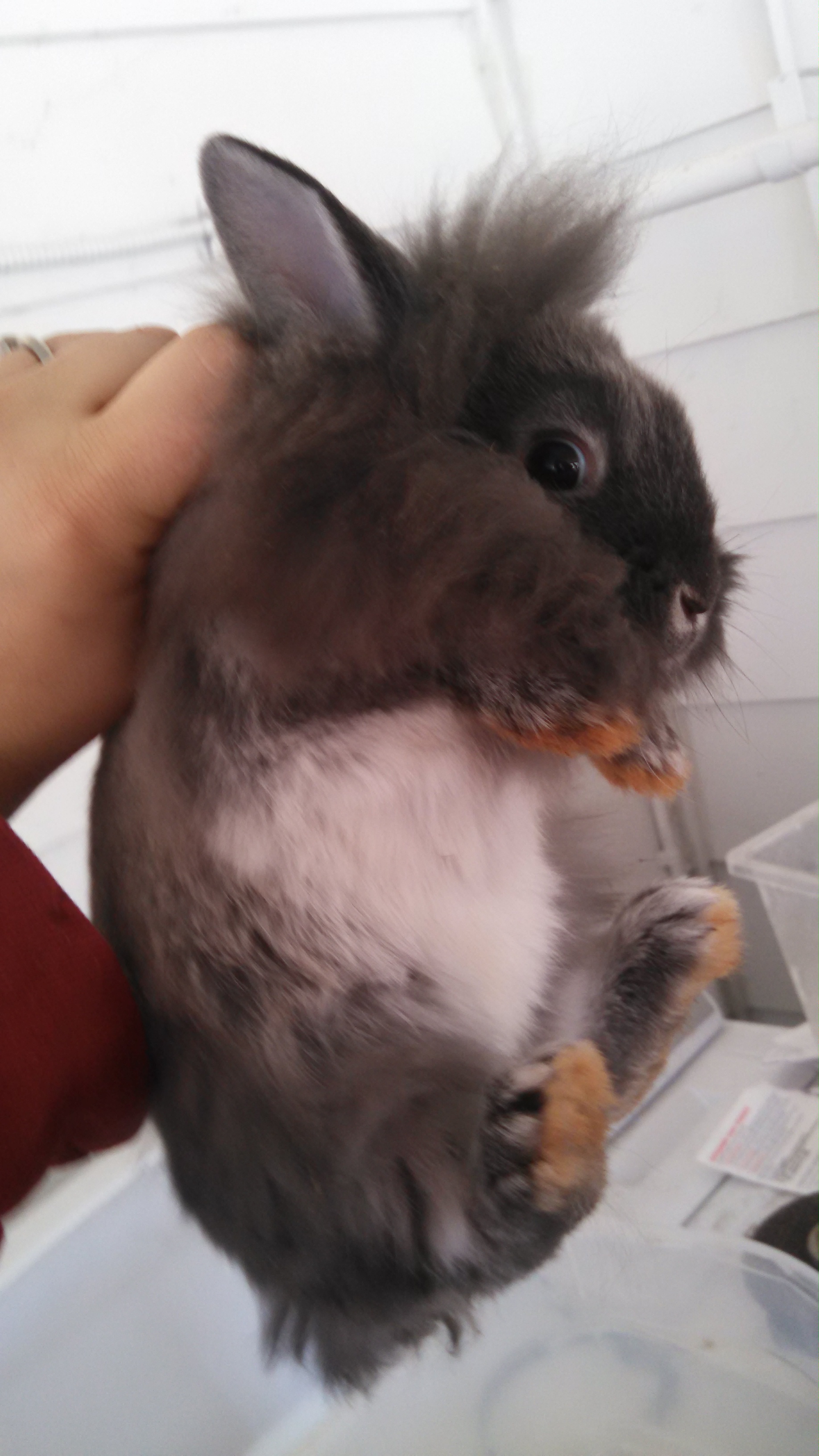 I finally finished the growout cages. I have two litters, one which is a week older than the other. There is an even split, 7 males and 7 females. Some of them have the mane like their daddy, others are poofy all over!