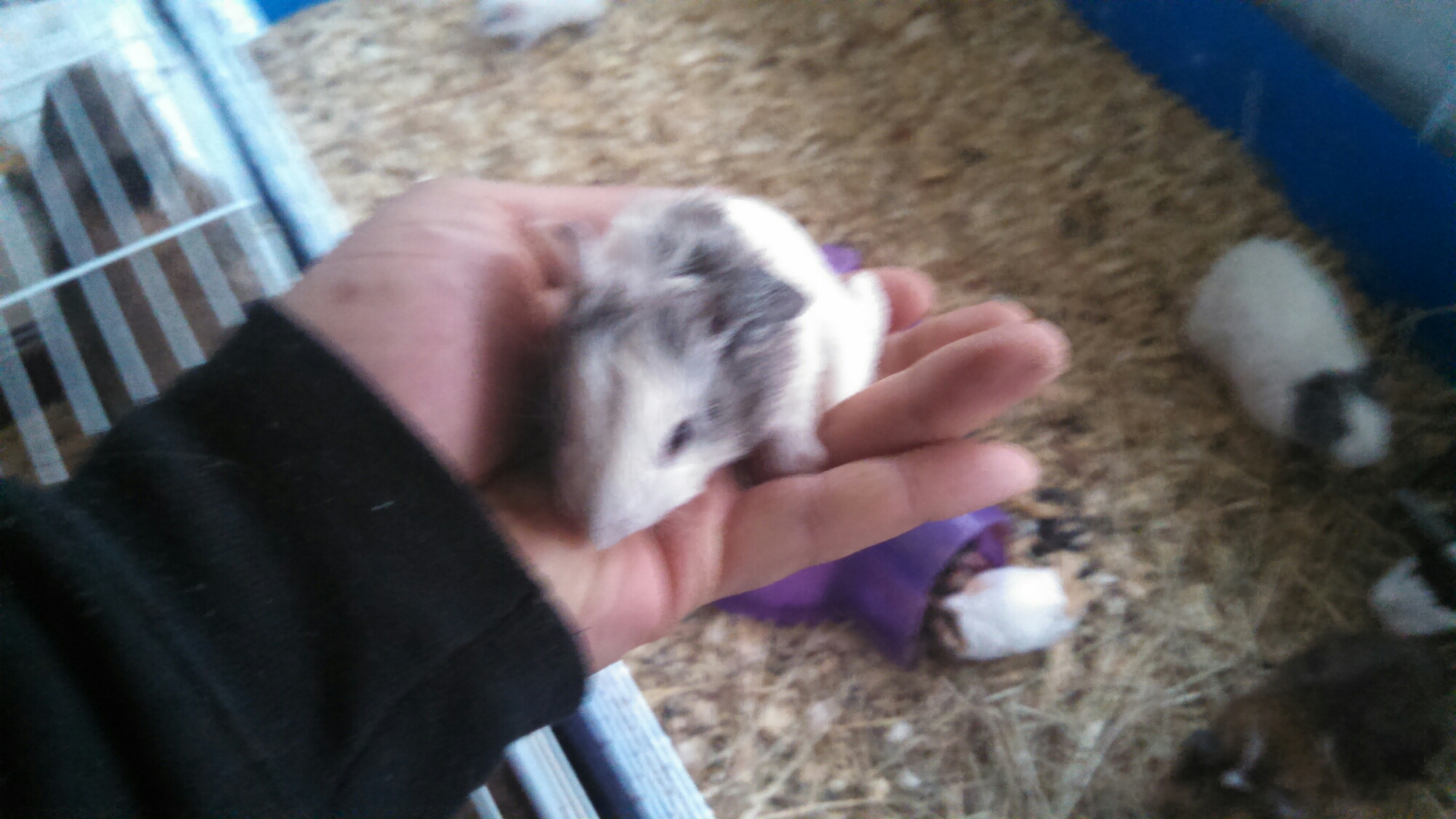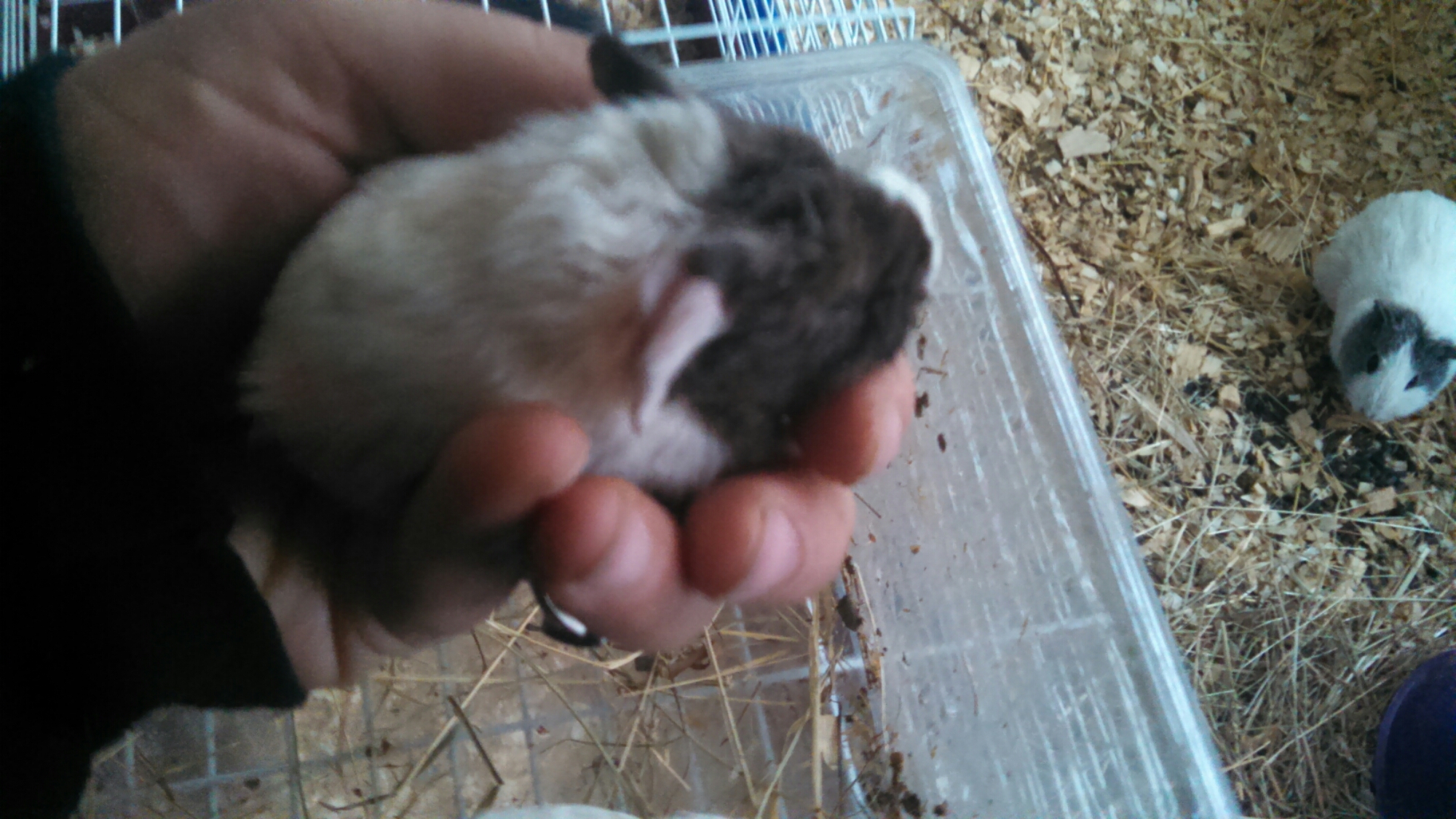 Grape was born last year, and had her first litter of babies Sunday night. I caught her cleaning placenta. There are three babies total.