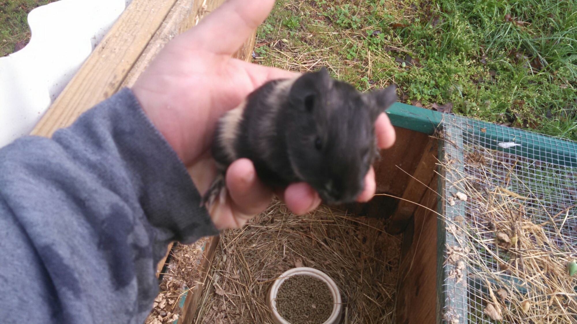 When I first got Charcoal over a year ago from Petsmart, she just looked to be a black pig with a bit of white trim on her stomach. I never knew she would turn out to have the most gorgeous babies EVER! anyways, last June, Charcoal had a gorgeous baby, Cocoa.
