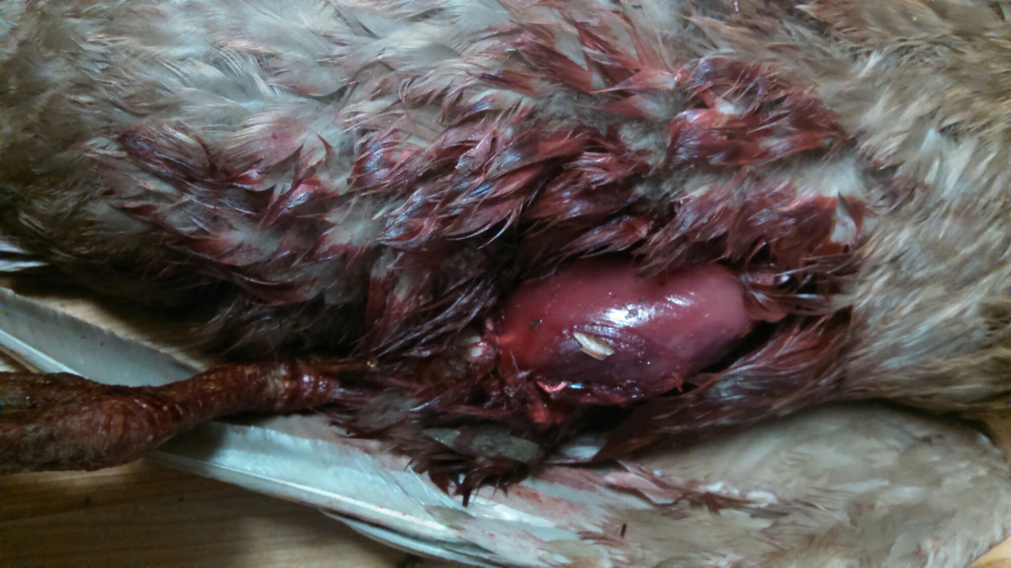I was practicing herding with my dog, and all of a sudden, one of my female ducks lets out a horrible squack, and blood starts pouring out of her leg. And no, the dog was back and didn’t cause it. My poor duck was gashed down to the bone. Apparently, this is fixable, but I didn’t know any better at the time, and this poor bleeding duck caused me to panic. Since I got an order in my raw food business for duck, I decided to save her from potential infection and cull her. It was so hard processing a duck that was so full of eggs. I found glass in the wound, and it is so hard losing something to a freak accident.