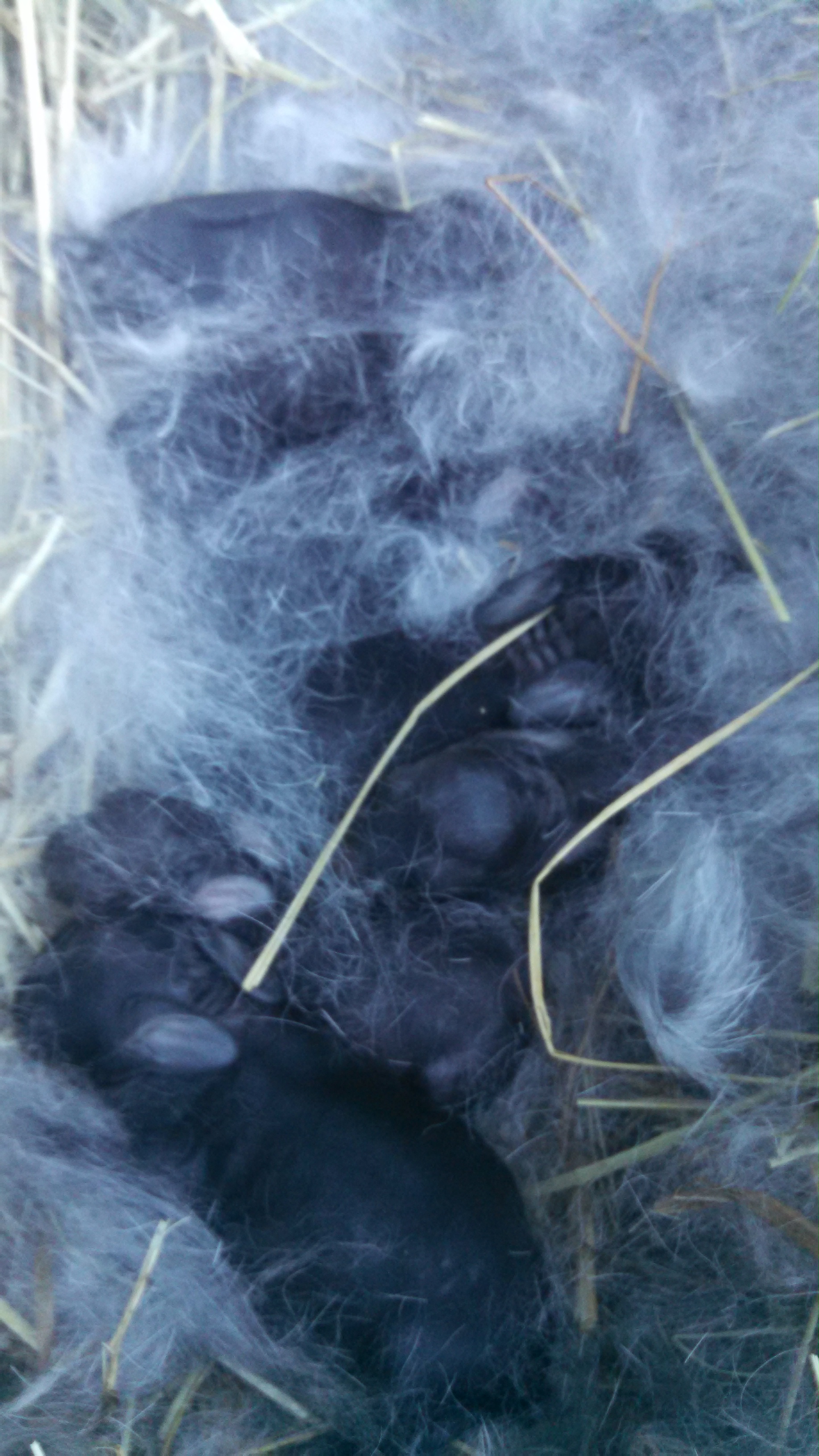 On 6/7, Flyte the American Chinchilla Rabbit had a litter of seven kits. This may be the last litter for her for the summer, as it is hot out, and bucks go sterile with heat. I am in Duluth right now, so the neighbors kids and my significant other are taking care of my little farm. I really miss seeing my babies born.