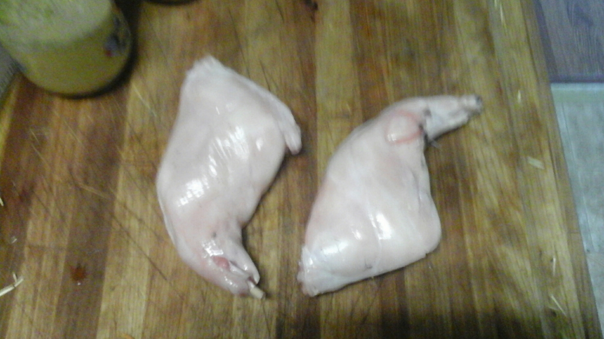 One rabbit rear end (around 1-1.2 lbs), separated into two parts