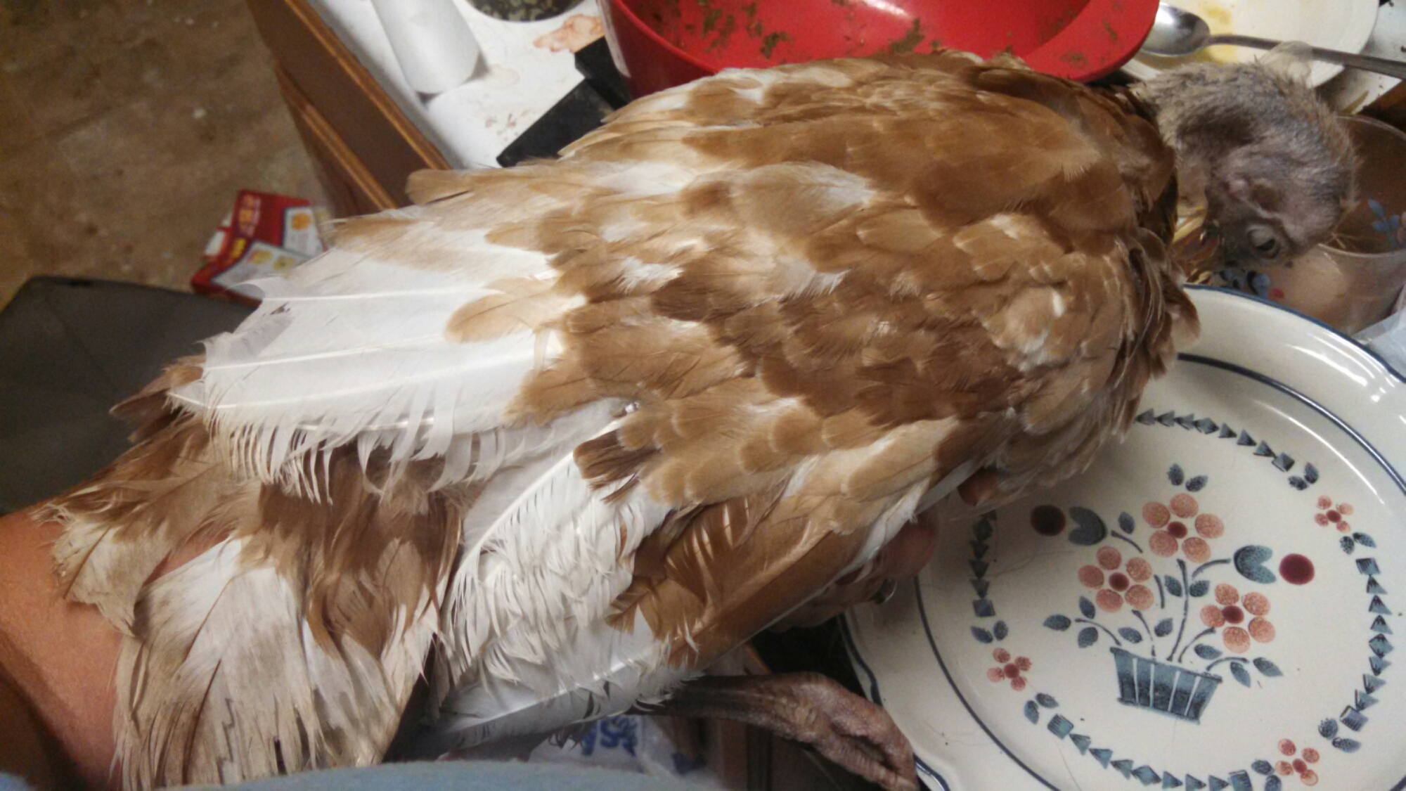 Needless to say, I am crushed. I has two females and a male, and I wanted to keep a breeding pair, and use one for Thanksgiving… But that isn’t an option now. I will miss her face, perched on my shoulders, eating grubs out of my hands, and following me around as I do chores.