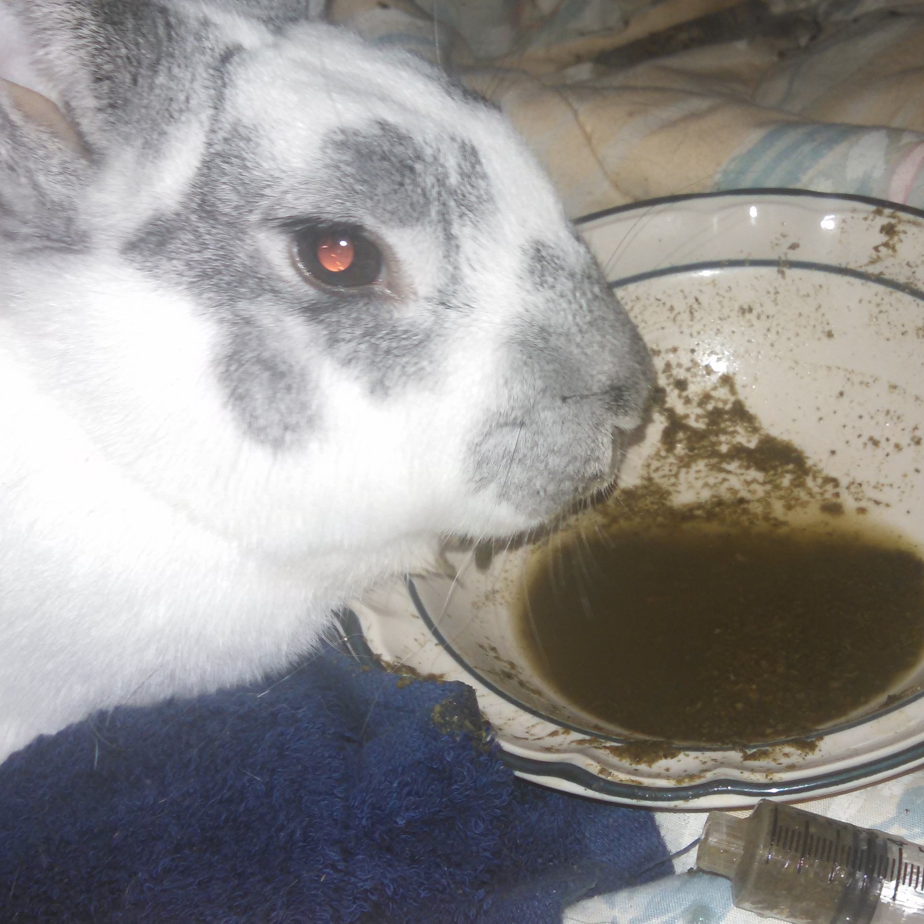 They had what is known as GI stasis, which is triggered by the same stress that triggered the respiratory stresses in the other rabbits. Once they started to eat, Magician, my amazing doe (who was utterly mowing down twice as much food as she needed), stopped eating. So, I am administering force feeding to her, and one of Physik’s son, just to be safe.