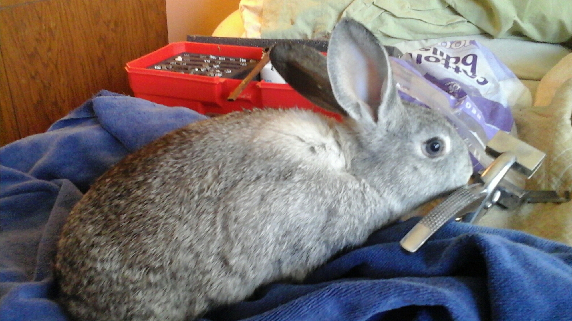 S is for the buck, Sandrider, and Y is for the doe, Syren. This is Syren’s 4th litter at Clarjo Farms. So, it is litter SY4. There are 5 does, averaging in at 3.85 lbs each. Now, tattooing a rabbit is a horrible pain in the butt, but necessary in order to keep everyone straight. I only tattoo purebred litters, and those does I intend to keep for breeding. In case my rabbits are stolen, or I ever decide to show (HA), it is good to keep records. Also, all rabbits start looking the same… especially purebreds. Speaking of, I should really get those pedigrees online…