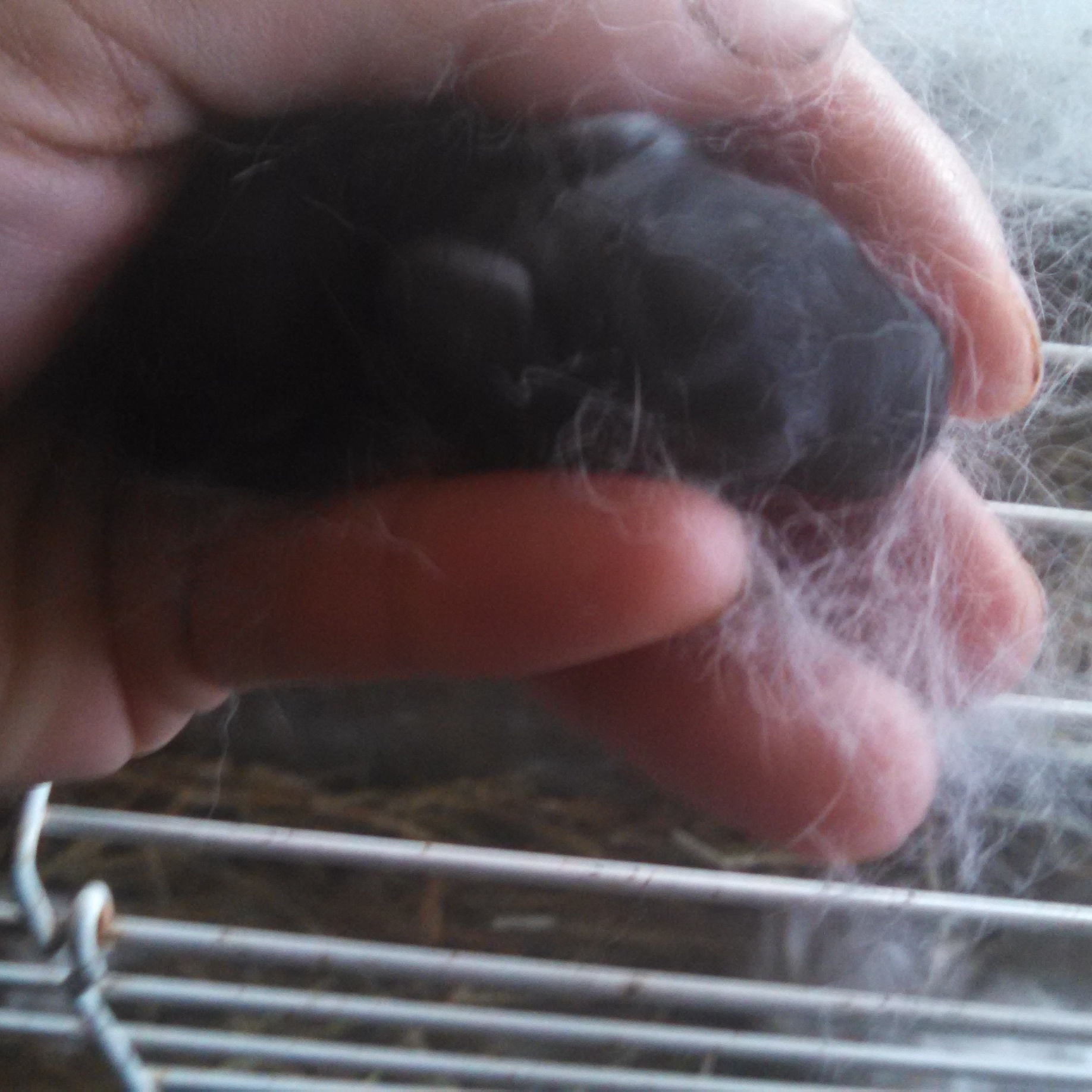 We bred her with Warlock, and wound up having a litter of eight. One didn’t survive. She pulled a great nest! Most of the babies are a lilac color like her, with a few dark babies thrown in.