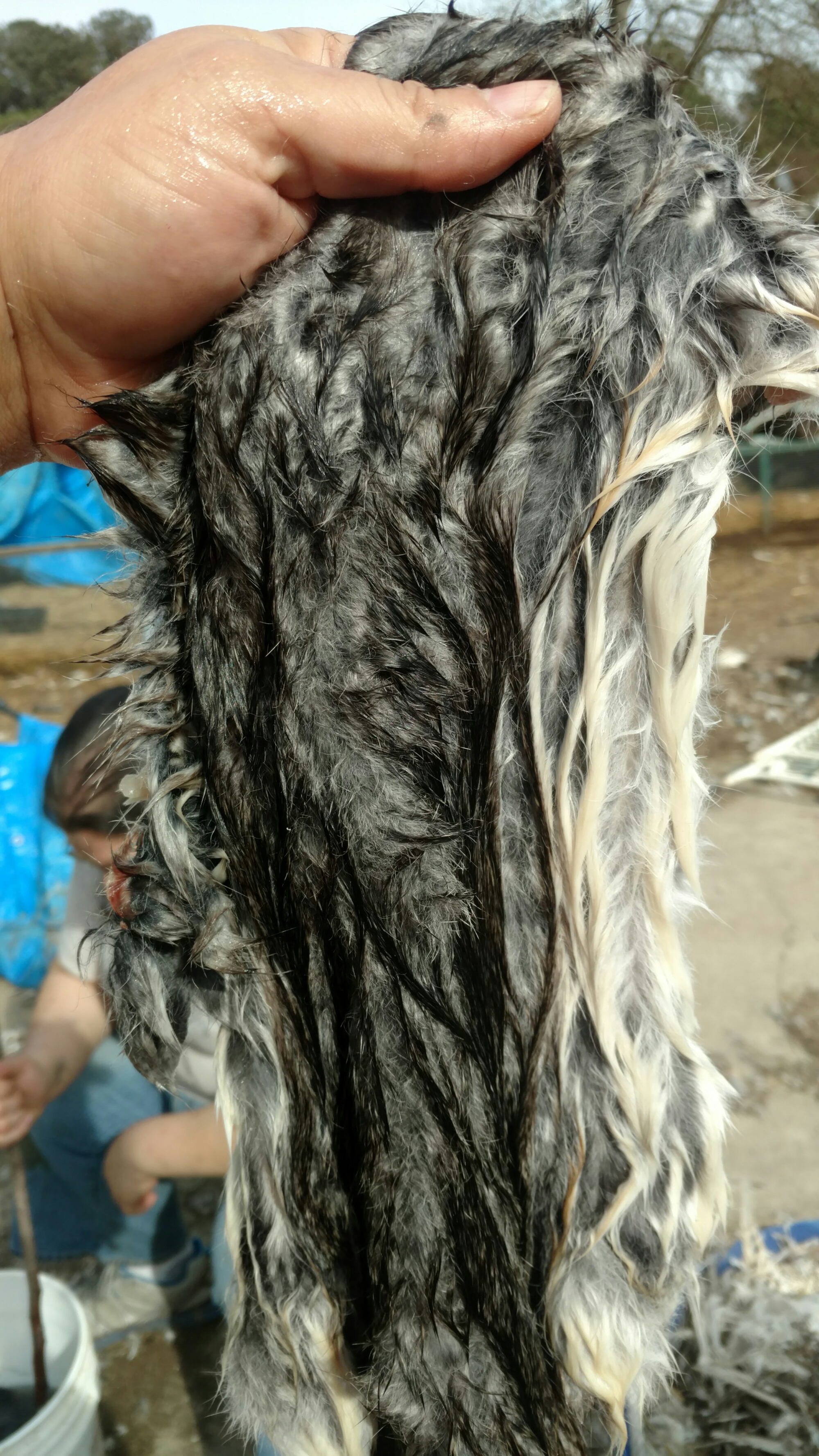Then I thawed some frozen skin tubes, cut them open and washed the fur with soap and water.