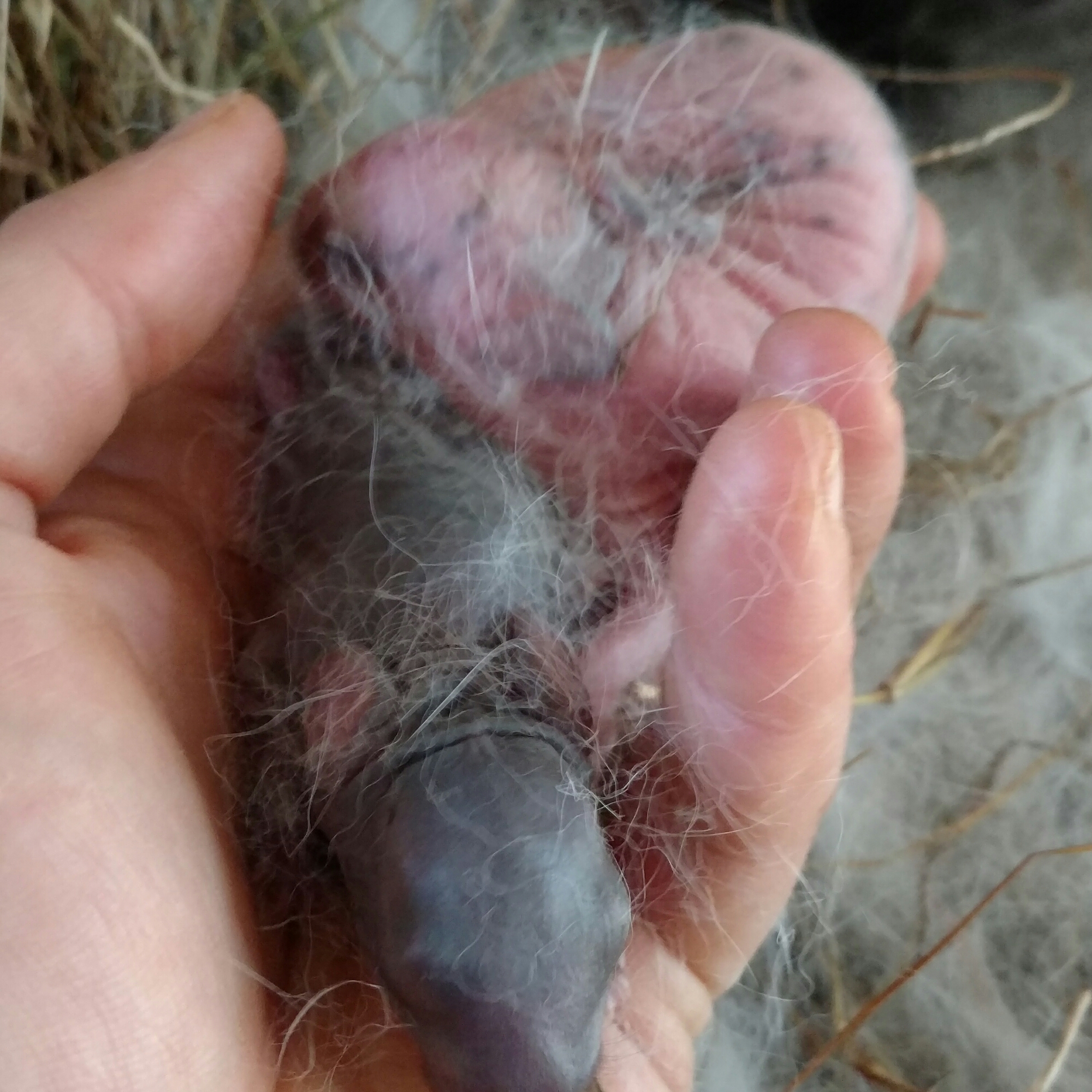 But lo and behold, she a litter of 8 kits this afternoon (10, with two stillborn) after a successful breeding with Buckbeak a month ago.