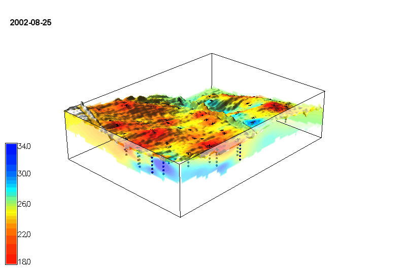 This is an animated time series of volumetric soil moisture content (TDR probes) created by Anna Petrasova. Notice how moisture content changes drastically over time. Using this type of visual technology, we can more effectively communicate with farmers, and understand how some of the soil physical characteristics vary over space and time.